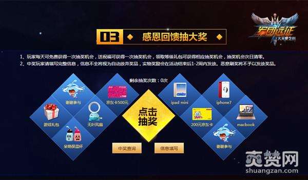 除了礼包,37《大天使之剑》三周年庆典活动期间,玩家还有机会抽取百元京东卡、无叶风扇、呆萌保温杯和iPhone家族的手机、平板等走心大奖。玩家每天可免费抽奖一次,送祝福、领取等级礼包、还可获得附加的抽奖机会!