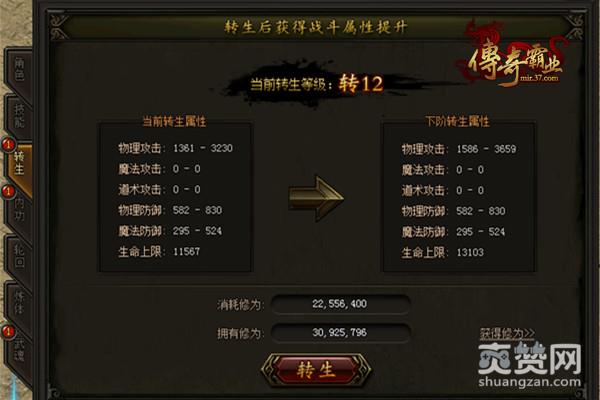 今日,37《传奇霸业》转生系统再升级,更强的战力,更高的属性,更多的血量,13转、14转再塑新的神话。转生虽然是大家梦寐以求的,但其过程充满艰辛和煎熬,各位霸爷别忽略了转生修为的获取和积累。