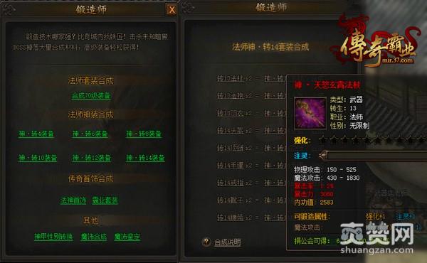 在37《传奇霸业》转生系统中,不同转生等级均有相对应的转生装备,既然转生等级有所提升,相应的“神·转13”“神·转14”套装也会震撼来袭,强劲的战力不用细说,酷炫的外形只有试了才知道多么惊艳!