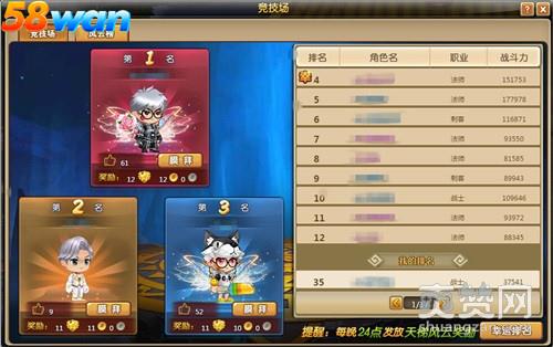 狭路相逢勇者胜.各位冒险家们,这是一场残酷的战斗,你们必须充分学会利用自己的技能,强化好自己的装备,才能发起对排名在前的玩家的挑战!如果不想要止步不前,不想要告负于人,你必须拿起武器开始挑战!58wan《冒险世界》热血竞技场,等你来挑战!58wan《冒险世界》正火爆开服中!