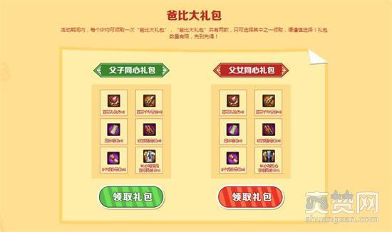 在“和爸比一起玩!”的活动页面中,玩家可以任选一个“爸比大礼包”领取,礼包分为“父子同心礼包”与“父女同心礼包”,里面包含超多游戏内珍贵道具以及限定时装,每个IP只可领取一次,想清楚自己的性别,可千万别领错哦!~~在活动页面中,用户还可游玩“爸比在哪儿”的躲猫猫小游戏,每天共有三次寻找“爸比”的机会,找到“爸比”可以获得神秘大礼,记得每天参加哦!