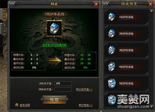 2. 戒灵值用于升级特戒,通过活动,boss掉落获得。