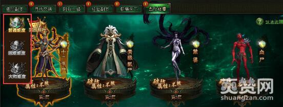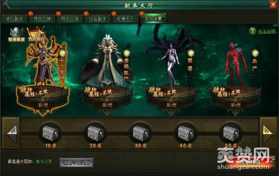 进入傲天盗墓笔记五行迷墓,迷墓内一共分为很多层,玩家需要一层层闯过去。五行迷墓中每闯过一层都有奖励,能闯过10层的倍数层就会收获更多额外奖励。千万别小看他们,迷墓共分为普通、困难、大师三种难度。