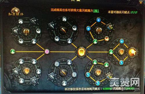(4)、XY游戏《蓝月传奇》战士英雄天赋第四重天赋加点图示: