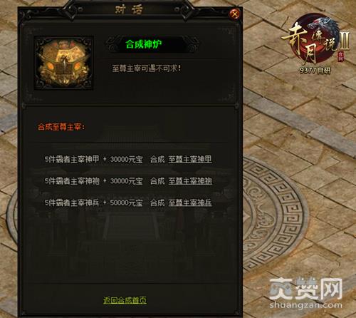 5件霸者主宰神袍+30000元宝 合成 至尊主宰神袍