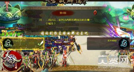 江东宴席,舌战群儒,诸葛亮可谓是一战成名,为刘备赢得了与东吴的合作,更是为以后娶孙尚香夺荆州打下了基础。我去玩《天命三国》“舌战群儒”玩法为玩家提供了一个一展才华狂揽钱财的机会,充满血腥PK的各大战场已经足以充分考验玩家们的战力,而“舌战群儒”则在另一方面挑战你的IQ实力,让玩家用智慧获取海量铜币、知识点等奖励。
