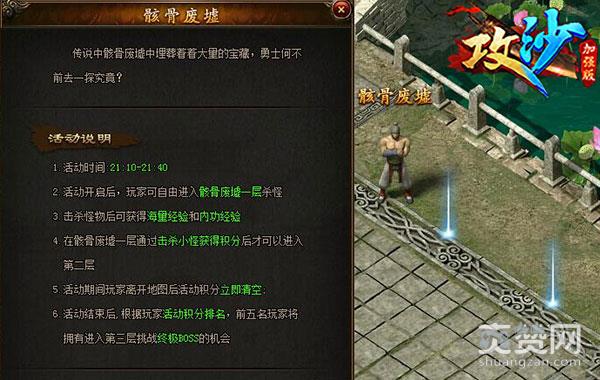 和其他寻宝玩法最大的不同在于:骸骨废墟有着积分排名,只有前五名的玩家才有进入第三层挑战终极BOSS的资格,才有机会获得极品宝藏!所以击杀小怪多拿积分是骸骨废墟玩法的关键!