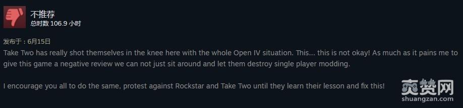 除了因为R星早就存在的“误封”行为而给出的差评外,OpenIV的风波是被提到最多次的事件,当然这次玩家们所针对是仅仅是Take-Two的行为,R星颇有躺枪之嫌。