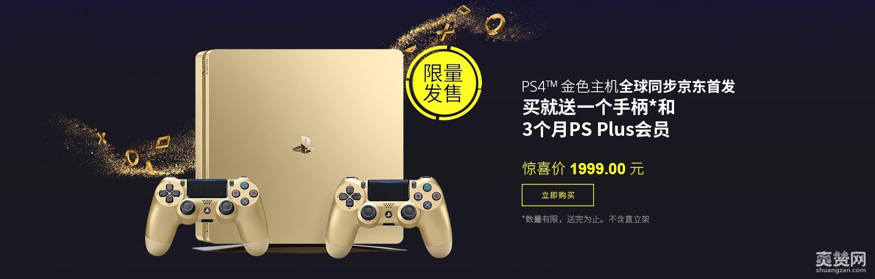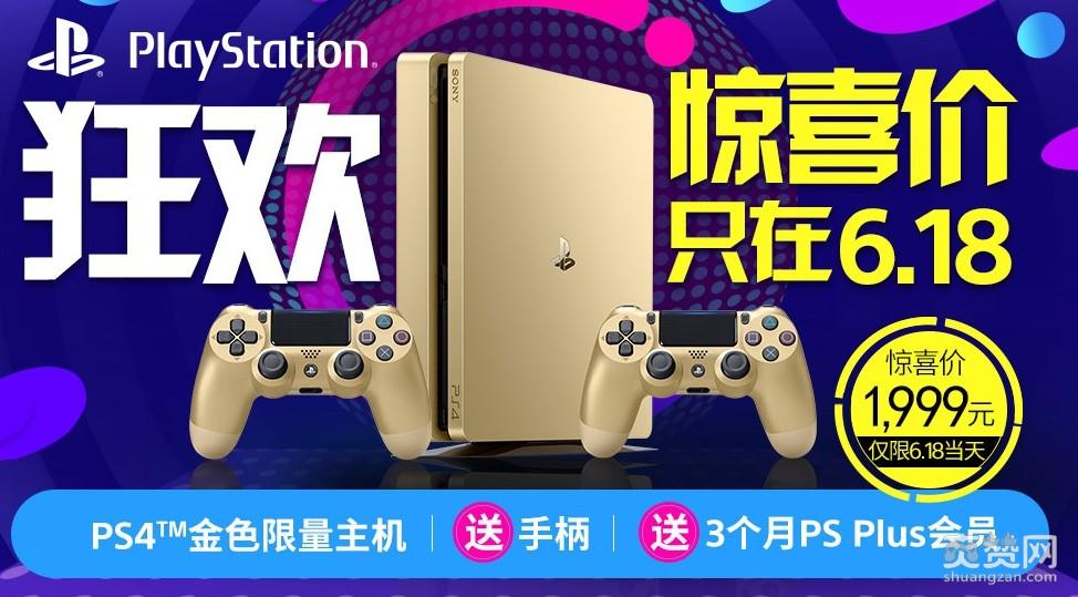 索尼国行金色版PS4已在今年6月14日正式推出,售价2199元,不过今天(6月18日)京东推出了特别促销活动,金色版PS4在6月18日当天售价1999元,同时还额外赠送一只手柄以及+3个月的PS Plus会员。