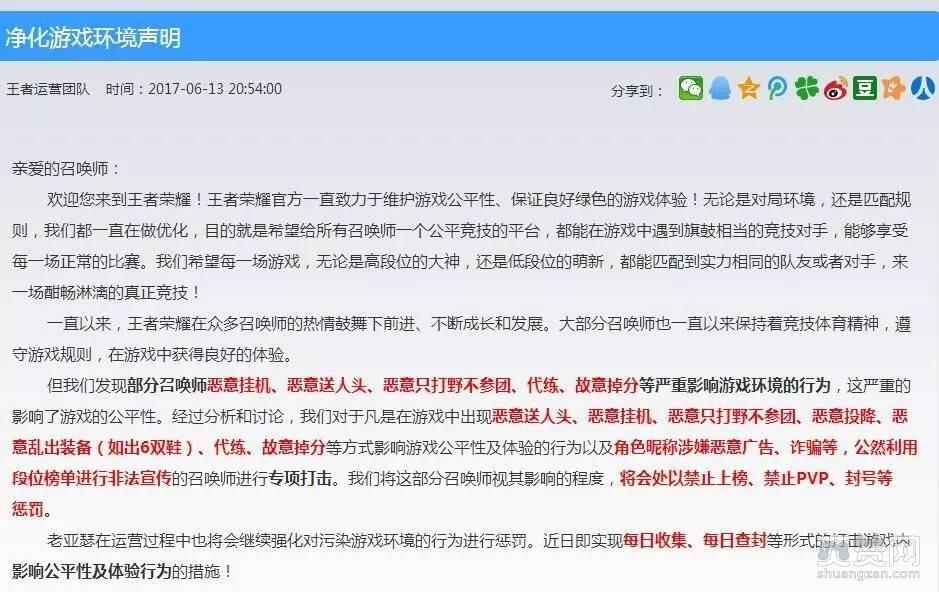不过,代练影响了游戏的公平性,是游戏规则所禁止的。6月13日《王者荣耀》运营团队发布声明称,将打击代练等严重影响游戏环境的行为,违规者将会被处以封号等惩罚。