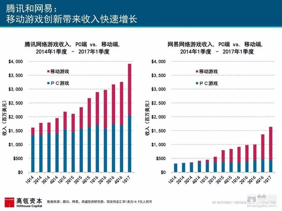 根据腾讯今年第一季的财报,公司今年前3个月的PC游戏收入约为141元,同比增长24%,而手机游戏收入约为129亿元,同比增幅为57%,手游的增长速度是PC游戏增长速度的两倍。而根据下图可以看出,网易游戏在手机游戏方面的收入已经大大超过其在PC端游戏的收入。