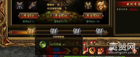 小编手中有9枚寻宝令,第一次寻宝就拿到了红色冥武战戒1枚;同时针对上述寻宝次数奖励,立即收获了1枚100万经验丹。如果消耗完9枚,花一点元宝再买一个寻宝令寻宝,就可以拿满4大宝箱,收获上千万的经验值。原来人生还可以什么都不干也能收获这么多经验值,傲天烈火封神寻龙探宝你千万不能错过喔。