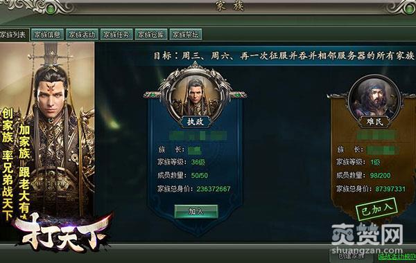 古有陈胜揭竿而起,高呼“王侯将相,宁有种乎”!破秦军,战四方;今有哥们网《打天下 》流亡家族因义而聚,亮剑皇城,剑指苍穹! 到底是流亡家族将会崛起,还是执政家族的霸业继续……欢迎走进《打天下》一统全服战况直播,看一看谁才是天下主宰!