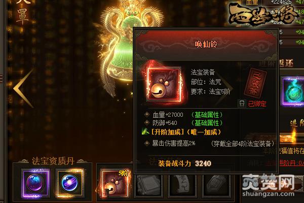 最后,玩家在冒险旅途当中所获得的各类“法宝”专属装备,也可以在法宝界面中进行佩戴,从而更进一步提升“法宝”的属性加成效果。