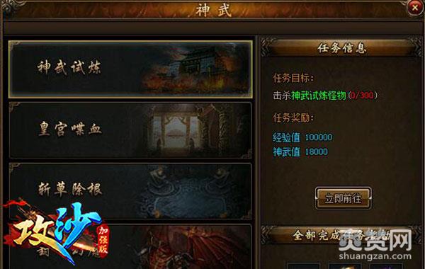 以上五种任务,挑战难度低,部分任务还可以挂机。玩家只要带上英雄就可以在10分钟之内完成所有神武任务,短时间内获取大量的神武值!