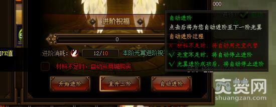 一阶光翼就满足了?你也太逊了!想要拥有牛逼闪闪的光翼,你就需要从傲天烈火封神赚取大把的光翼进阶丹来提升它的祝福值,祝福值满就可以升到更高的阶层。进阶的方式有两种:一种是你赚到了足够的光翼进阶丹,直接选择自动进阶;还有一种是进阶丹不够,但想要强行进阶,那就得看看你是不是元宝充足了。具体操作细则,自己去把握。