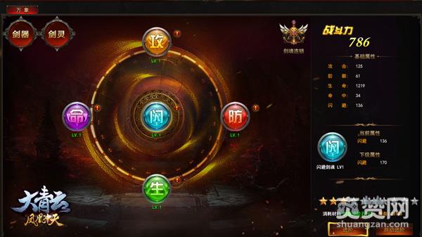 剑灵,顾名思义是指剑的灵魂。在《大青云》里,剑灵随剑器等阶提高而解锁,消耗一定数量的进阶石可开启解锁的剑灵镶嵌格。整个系统共12个镶嵌格,其中包含了攻击、防御、生命、闪避、命中五种属性绝对值加成和百分比加成,除此之外还可增加剑器的全属性加成。