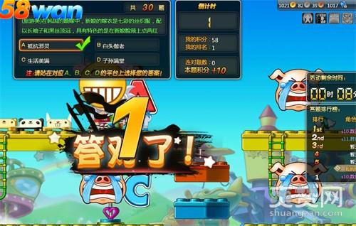 58wan《冒险世界》最强大脑玩法中,回答问题就可以获得积分.每答对1题可以获得10积分,答错获得1积分,连对可获得额外积分,连对题数越多,那么额外获得的积分也就越多.获得的积分越多,能够兑换的奖励也就越多.知识问答涉及各个方面的小知识,有趣小知识你了解吗?