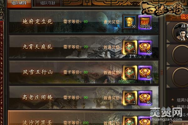 在游戏中,通过主界面上方“跨服组队”按钮,即可打开相关界面,并参与跨服组队破阵玩法。当前版本中,《西游之路》一共提供了等级要求分别为60-100级不等的五个不同破阵副本。参与该玩法的玩家,可以选择就地自行组队,也可以通过跨服匹配来自动寻找合适的队伍共同进行挑战。