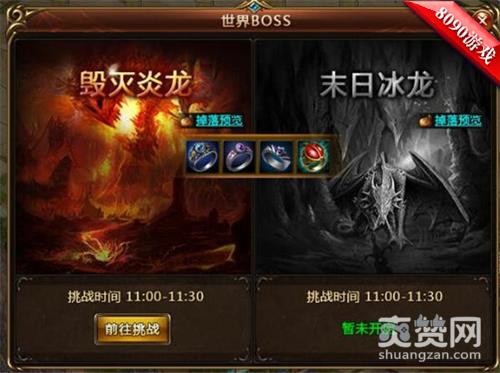 在8090龙之领主中有两个非常强劲的boss,一个是毁灭炎龙一个是末日冰龙,让前往挑战的小伙伴们体验到什么叫做冰火两重天,当这个boss血量下降到一定比例后,将召唤精英怪物,攻击这些精英怪物将获得更高的奖励收益哦,当boss被击杀之后输出前10的玩家可获得排名奖励,而幸运的拿到最后一击的玩家将获得额外大奖。