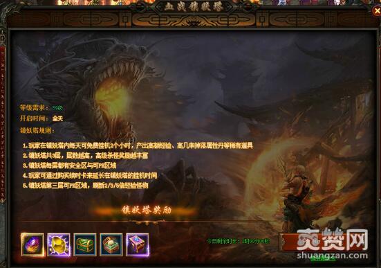 这都只是傲天西游之路血战镇妖塔中第一层的奖励。想要获得更多高级奖励请移步第2~3层,千万别忘记2~5倍怪物经验的第三层PK区喔,堪称登峰造极的赚经验领地!