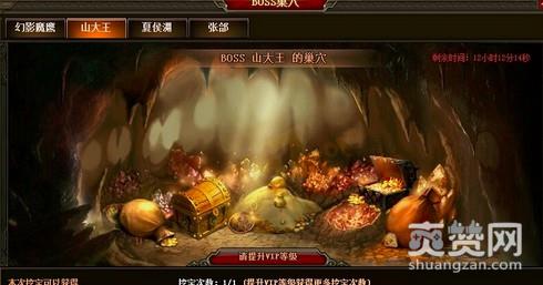 只要当某一个等级的BOSS被击杀后,那么达到该BOSS等级的玩家都可在盛世三国2BOSS巢穴中发现对应的BOSS。第一次的挖宝是免费的,玩家只需点击发光处即可开始挖取BOSS巢穴宝物,之后只需提升VIP等级即可获得更多挖宝次数。