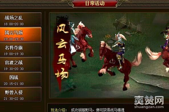 等到每天风云马场开启后,在场地当中就便会出现大量猎马骑兵,只要玩家击杀他们后那么就算完成任务了,之后就可以获得大量战马精魄。每位玩家每天一共可以击败20个猎马骑兵,在这里地方是安全区域,你不用担心被别人击杀,可放心挂机杀怪。