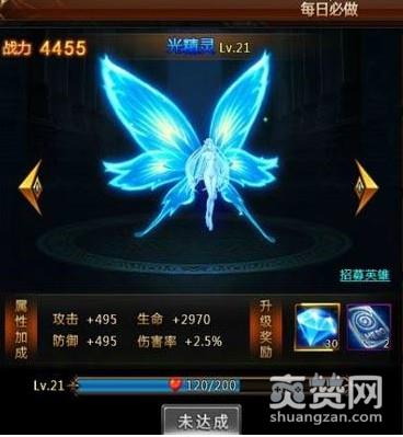 在玩家游戏的过程中,时时刻刻会会有一只美丽的小精灵伴随左右,小精灵每日会给玩家发布若干任务,玩家完成后可获得道具奖励,小精灵也会因此而升级;小精灵在升级后不但会提供玩家属性加成,更有好礼送上。
