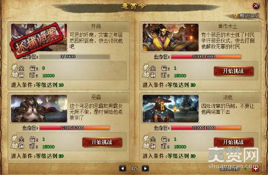在悬赏令里,每日有5次挑战机会,每挑战一次扣除一次挑战机会;成功击杀悬赏罪犯可获得金锭和铜钱奖励,若战斗失败可获得部分铜钱奖励;若挑战次数不足,可通过点击购买次数按钮购买,每次消耗2个令牌。等级不同的话,能够挑战的恶人也是不同的,除了奸商之外,后面还有“通天大盗”“摸金校尉”“叛军首领”“流寇首领”“采花贼”“黄巾贼首领”“山大王”“通天策士”“压寨夫人”“群山盟主”“护山巫女”等,等级不同挑战不同 ,等级越高挑战就越大奖励就越丰富。