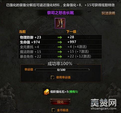 5.强化过的装备可进行分解,分解后可100%返还强化成功时消耗的强化材料