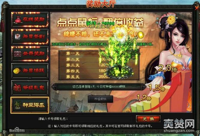 4、种豆得豆,新服的前2天,除了可以种植铜钱外,还能种植礼金,如果人品爆发,礼金直接翻倍,大家这个时候千万不能把礼金全部花光了,要不然连种植都种植不了了。