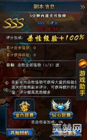 所以玩家朋友们可以很明显的看到,时间是这个副本的首要因素。如果玩家朋友们想要快速升级的话,那么一定要使用钻石或者金币的鼓舞技能。并且玩家朋友们如果想要打的快的话,那么一定不要使用挂机的选项,手动打是最好的。