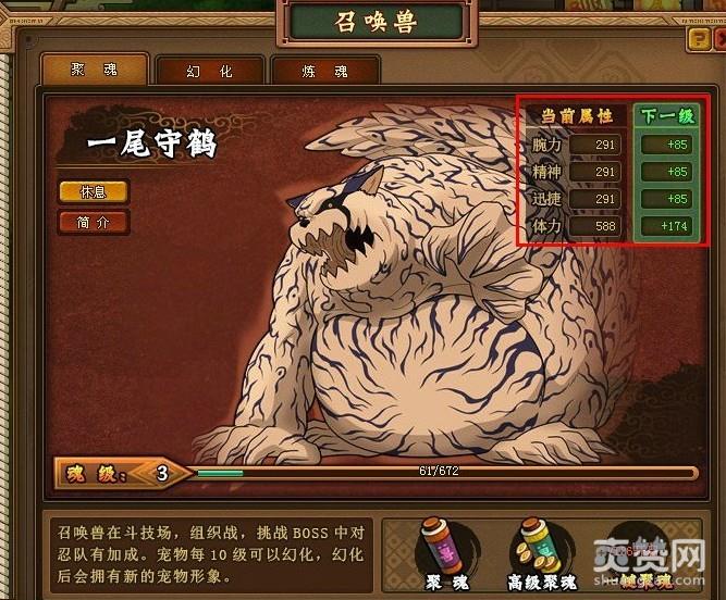 在火影的动漫当中,尾兽是玩家朋友们津津乐道的一个话题。一个尾兽在体内,能够让宿主借他的力量,最后完成反击。在网页游戏火影疾风坛的世界当中,尾兽变成了召唤兽的存在。能够让玩家朋友们最好的自身自己的属性,能够大幅度提升腕力、精神、迅捷、体力等。不仅仅在pve当中有很好的作用,pvp方面也是一把好手。那么这个召唤兽到底应该怎么样养成呢?下面就让小编来好好的说一下。