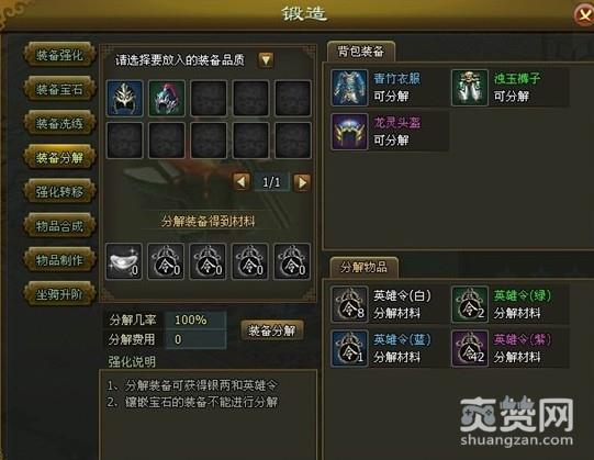 升级(40级开启):升级装备需要消耗掉升级石以及绑银,