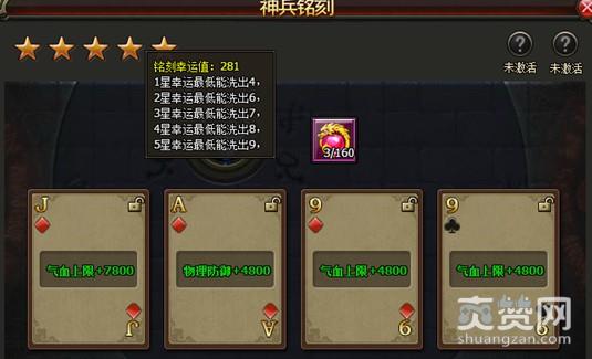 玩家等级只要达到了30级,就会开启“神兵”系统。点击游戏界面上的“神兵”,即可选择进入。首先需要装备上一件神兵,神兵可以通过“抢boss”活动进行获得。界面左侧可以进行选择角色。神兵升阶的时候需要花费相对应等级的神兵材料(可以由“抢boss”活动进行产出)。当材料足够了以后,只需点击升阶即可。神兵的升阶可以提高相应的属性加成,同时还能够增加“铭刻格”。紫色以及紫色以上的神兵方可进行铭刻,铭刻后能够增加海量属性。神兵的阶级越是高,铭刻格也就会越多。铭刻部件的时候需要花费一定量的铭刻石或者使用元宝进行购买。点击确定按钮,便可生成铭刻部件。
