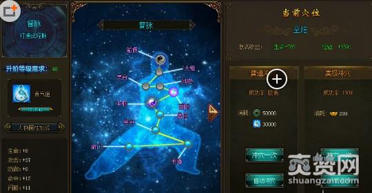 经脉可分为正经和奇经两类。正经有十二,即手足三阴经和手足三阳经,合称“十二经脉”,是气血运行的主要通道。正统武侠小说中打通任督二脉即会打开新的武侠境界,在雄霸隋唐中也同样推出了新奇的经脉系统。 想着如何让自己更强,打通您的任督二脉,提升角色实力。经脉冲穴有多种方式,大家可以选择消耗铜钱及真气的普通冲穴。土豪们除了普通冲穴,还可以选择高级冲穴,100%的成功率,畅通到底。