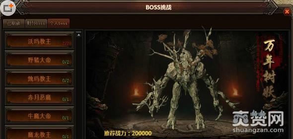 在游戏当中,每个玩家都拥有单挑强大BOSS的机会,点击激战BOSS图标,可以进入个人BOSS界面进行挑战。个人BOSS根据等级依次开放,等级越高,可以挑战的BOSS越强大。每个BOSS每天都可以挑战一次,进去后无论是否成功击杀BOSS次数都会消耗,进入之前一定要做好准备。高等级的个人BOSS地图需要消耗副本卷轴才可进入,副本卷轴可在未知暗殿掉落或花费绑元购买。