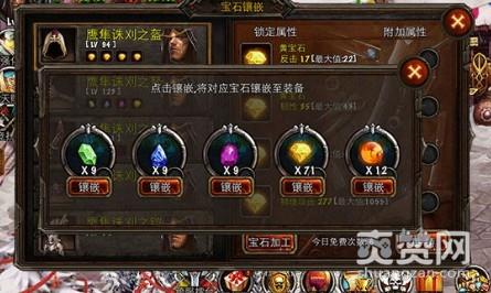 每一件的时装都会自带一个镶嵌孔,想要增加镶嵌孔的数量则需要消耗道具金刚钻,金刚钻能通过参与活动或者商城购买获得。镶嵌在时装上的宝石分为攻击力、生命上限、物理防御、魔法防御四种,宝石可以通过参与永恒之塔获得,低级宝石可以合成更加高级的宝石,高级宝石会带来更加强大的属性。每一件时装上面只能镶嵌一颗同种属性的宝石。