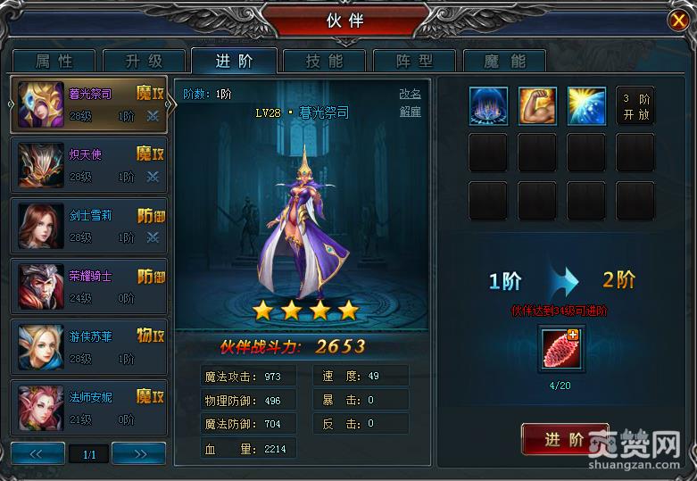 伙伴除了提升等级、领悟技能来提升属性之外,还可以通过【进阶】来提升实力,且阶数越高,可领取的技能数量越多,技能越好!