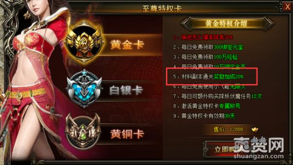 如果是玩家有至尊特权卡,通过材料副本还能获得收益加成哦!