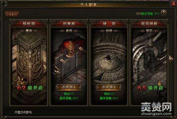 在《百战沙城》爽赞网中,通过材料副本可以获得魔血、金币、宝石、羽毛等珍稀道具,还有海量经验,当然你要是没有副本卷轴可是进不去的,副本卷轴在未知暗殿有掉落,也可以通过商城购买。