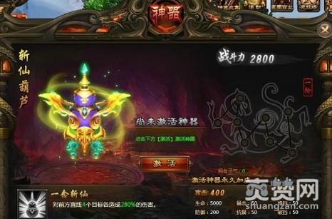 1、神器系统于23级开启,开启时可获得第一个神器----斩仙葫芦