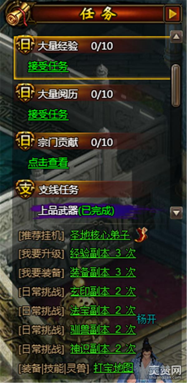 大家们肯定要问了,进入游戏后,跟着主线任务遇上等级不足导致卡点后该做什么?这时候小编非常负责的告诉你们,可以借鉴右侧任务栏,当玩家达到45级后便可开启经验副本,进入副本后你们会发现,等级刷刷刷的往上涨,但一天只能三次噢~但您如果是VIP的话,嘿嘿~~。除了经验副本外,玩家等级到达50级后,游戏将开放大量在线限时活动喔,活动奖励丰富、奖励品种应有尽有;且在完成每日日常任务后可得到其余相对应的奖励,例如:驯兽卷轴、修为、阅历,这三类奖励可对于之后的人物培养起到了决定因素的改变喔~更不光光是经验副本,其余例如单人玄印副本、单人法宝副本、单人神识副本都有大量经验等待着你们去收获喔~
