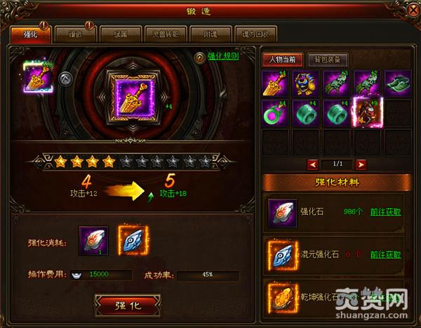 强化:玩家通过消耗强化石可强化装备,当然是有一定几率失败喔~这时候就看你们的脸到底是黑还是白咯~