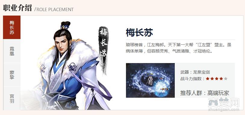 琅琊榜中,四大职业梅长苏、蒙挚、霓凰、宫羽,其实除了使用的武器不同、武技不同之外,他们的技能效果完全一致,建议大家不要跟着玩家大部队去一起玩梅长苏,我们的装备是分职业的,结果现在的情况是,同样一件终极装备一件梅长苏的可以买一套其他职业的装备,其实我们完全可以选择一个自己喜欢的职业,技能特效看着顺眼才是硬道理。