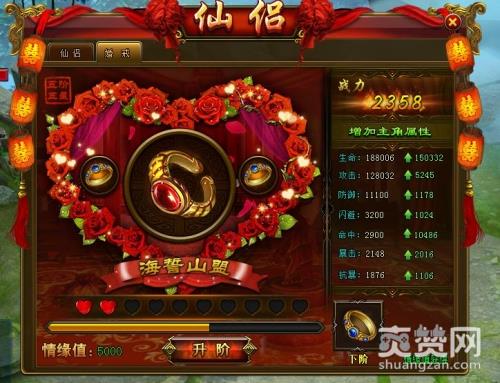 成为仙侣后,可获得婚戒,消耗情缘值进行升阶,获得婚戒技能和属性