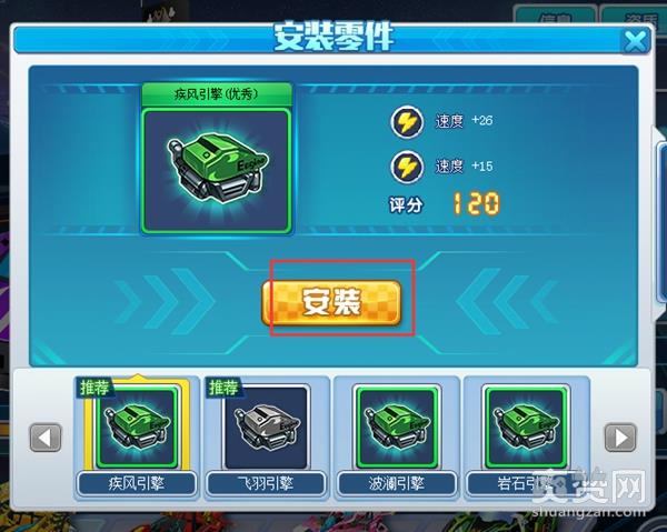 再点击安装,就可以给赛车装上零件啦!记得装备类型契合的赛车哦!