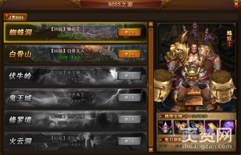点击主界面上的【boss之家】图标,可以进入boss副本主界面