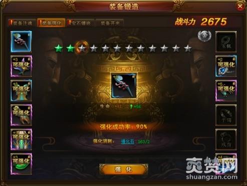 如上图所示,消耗【强化石】,可以对装备进行升星,强化成功则点亮星星,相应属性获得提升。