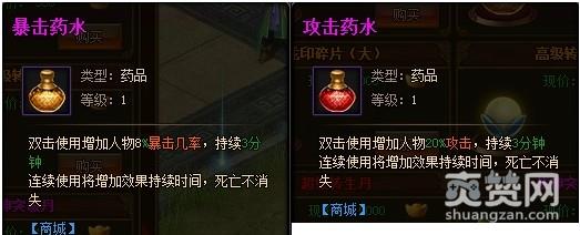 那玩家要怎么获得这两种药水呢?其实玩家可以通过击杀BOSS有几率掉落之外,还可以通过活动奖励、商城购买来获得。
